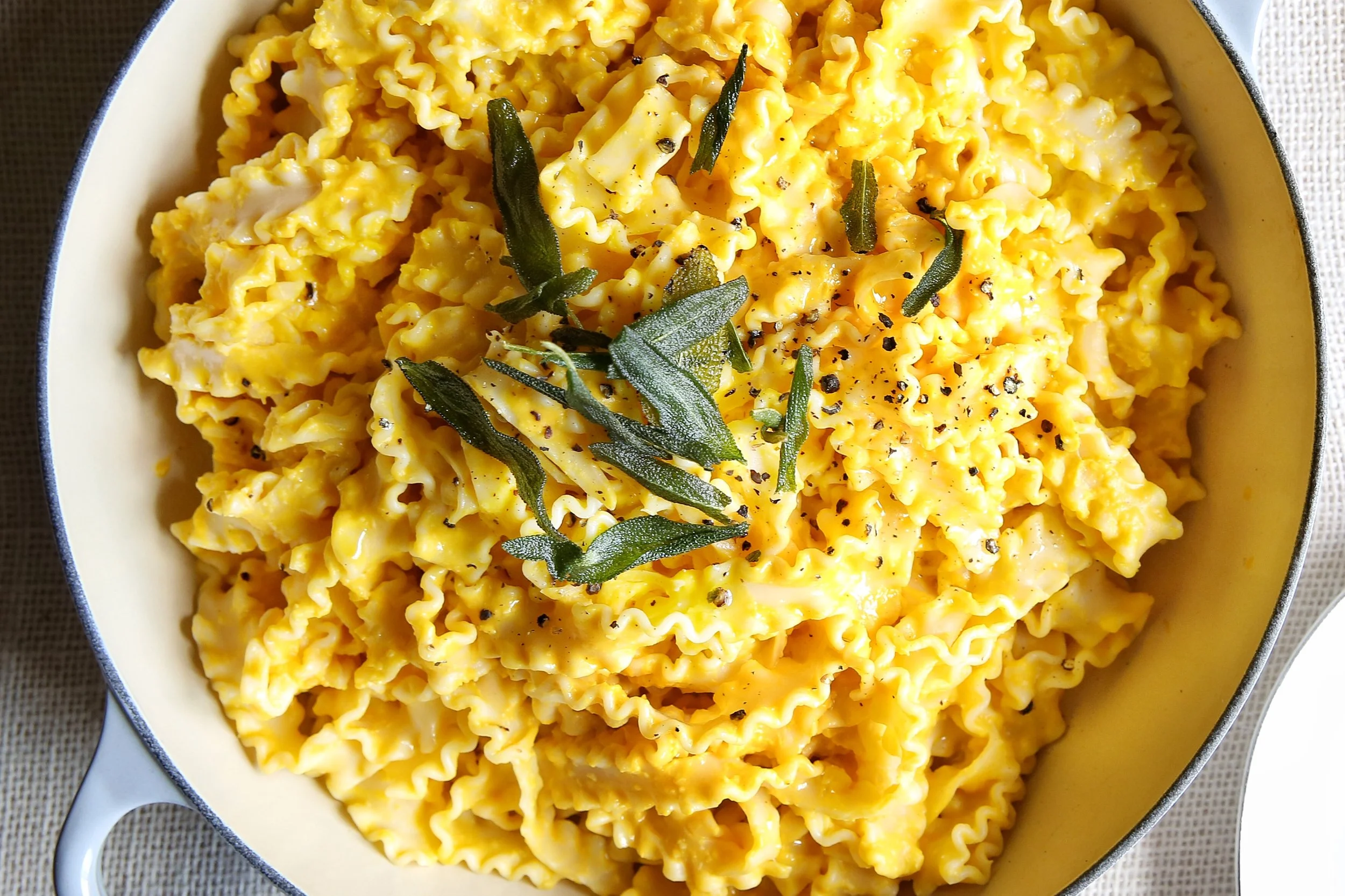 Top pasta with flaky sea salt, ground black pepper and fried sage leaves. Serve immediately.
